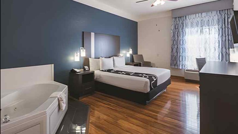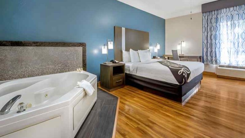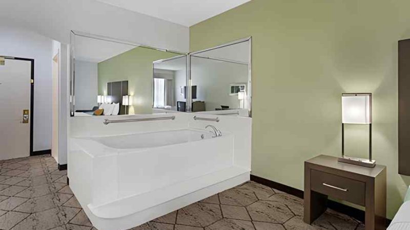 The La Quinta by Wyndham Austin – Cedar Park is currently the top rated hotel with Jacuzzi suites in Texas. You can also see the full list of best hotels with in-room Jacuzzi in Texas.