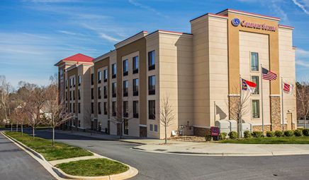 Asheville is perfect for its mountain charm. Greensboro is another great option with relaxing Jacuzzi suites.