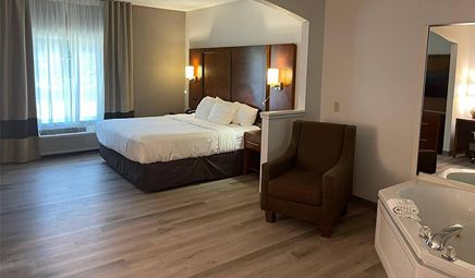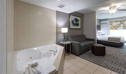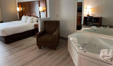 There are many affordable hotels with spa tub in room in Charlotte. One that stands out is the Best Western Carowinds. You can choose from our full list of budget-friendly hotels with hot tub suites in Charlotte.