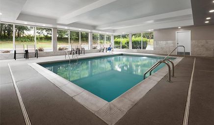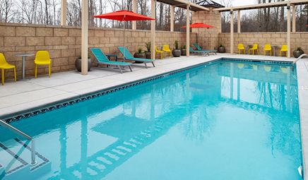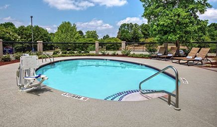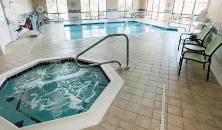 Are there any hotels with hot tub in room in Charlotte that have an on-site pool?