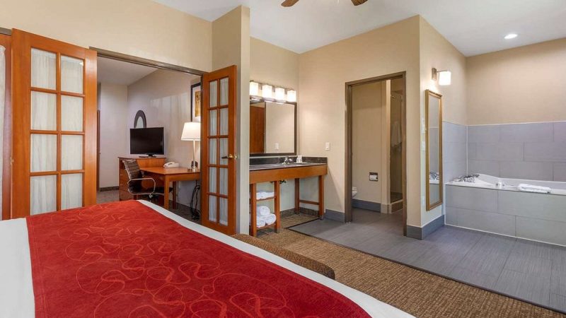 We’ve picked out top hotels with Jacuzzi and hot tub in room in Addison for you. This includes details about rooms, hotel rankings, location, and a brief overview. Once you’ve selected a hotel, click ‘See available rooms’ to visit our partner’s site. Input your preferred dates to check availability. The website will then compare prices from various platforms to ensure you’re getting the best value. After redirection, fill out the additional details about your stay. Some hotels offer pay-at-the-hotel options, while others need payment upfront, typically with a free cancellation policy.