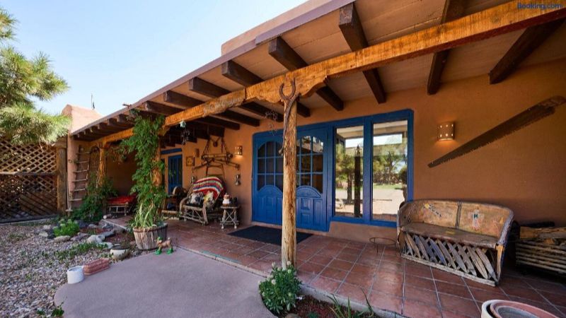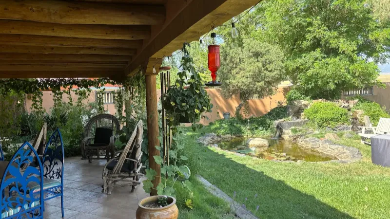 Urban farm hotel with private spa tub, free breakfast and pool, near Albuquerque airport and Rio Grande valley.