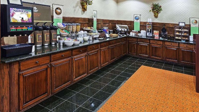 The pros of this place. It was clean which was great. And well taken care of. Breakfast was good. Service was really good. They have a pool we didn’t get to try out but it looked amazing. And allowing pets to stay is wonderful.