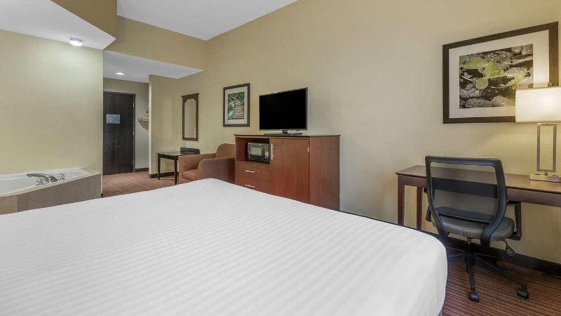 Hotels with Jacuzzis in the room in Anderson, SC, are conveniently located near a variety of attractions. You can explore the scenic beauty of Lake Hartwell, visit Anderson’s downtown historic district, or enjoy outdoor activities at Sadlers Creek State Park. Nearby Clemson University offers cultural events, sporting activities, and botanical gardens. For those interested in shopping and dining, Anderson’s commercial areas provide a range of options. Whether you’re interested in nature, history, or local culture, there’s something for everyone near these relaxing accommodations.