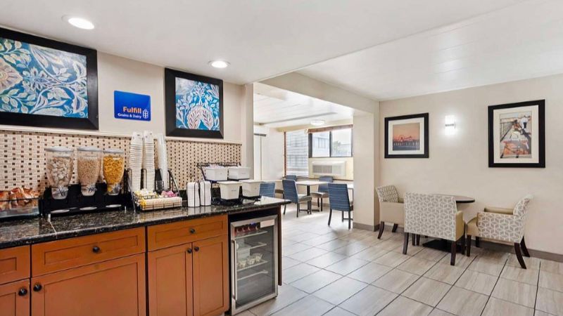 Sketchy ToS (Terms and conditions aka rules) that they tell you to "just sign it" upon asking for a $200 deposite that they don't tell you about as well as the full cost of your stay aggressively. Only thing I was able to read is they reserve the right to check your room whenever they want to. This was on check in. Got to my room and saw prime hack electrical, door hinge for the bathroom is crap not allowing it to close, showerhead is dirty, they resell others lost electrical cables for double the price of what the original owner paid for, most staff do not speak English. My particular bathroom sink has an issue where whenever the hot water is used, the pipes make an extremely audible, obnoxious vibrating noise randomly. Neighbors are extremely loud. WiFi went down all the time. They did nothing to fix it after telling the manager that speaks English several times about it. All for $1200 plus a $200 deposit I was not told about, so that was fun finding out about last second. As far as breakfast, I'm surprised I didn't get charged for having a single hard but undercooked waffle. Amongst everything else in NJ, this was sub par by far. Glad to be out of that hotel.