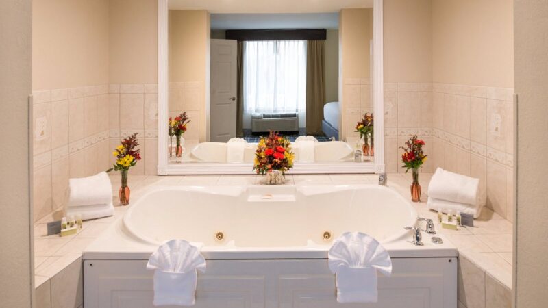 The best affordable hotel with whirlpool tub in room in Baltimore is Country Inn & Suites by Radisson, Annapolis, MD. See our full list of best budget-friendly hotels with hot tub suites in Baltimore.