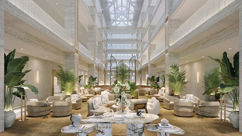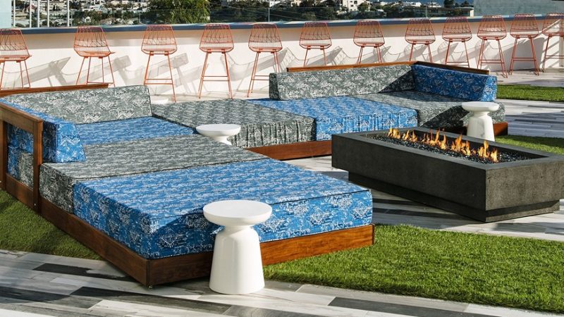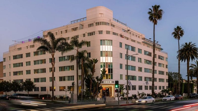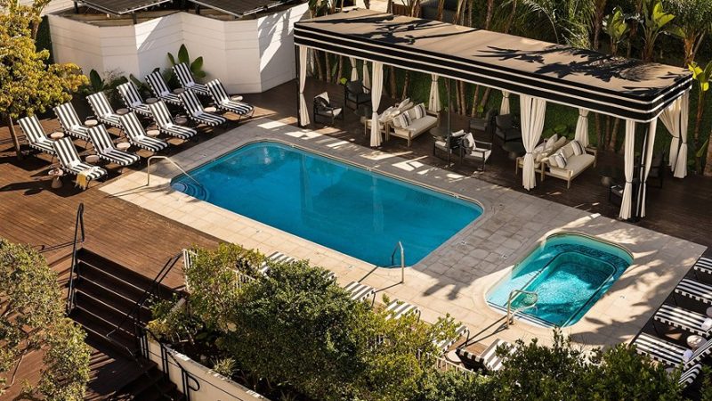 Luxurious hotel with private hot tubs and balconies, with al fresco living spaces on Doheny Drive.
