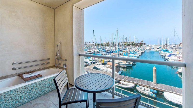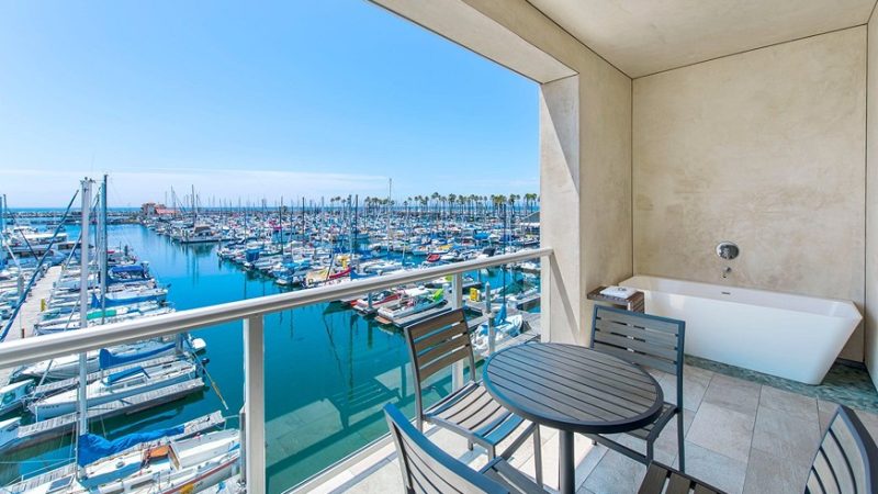 Some of the best oceanfront hotels with spa tubs in room in Los Angeles are Surf City Inn, The Portofino Hotel & Marina, and Hotel Hermosa.