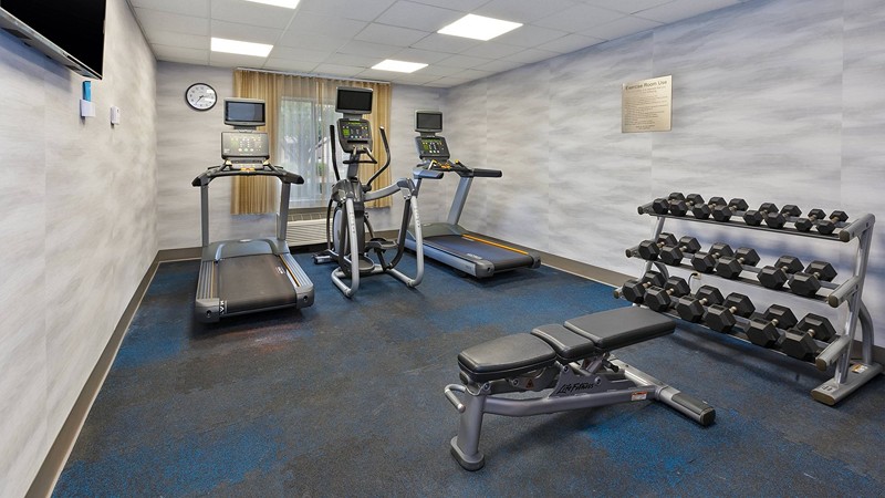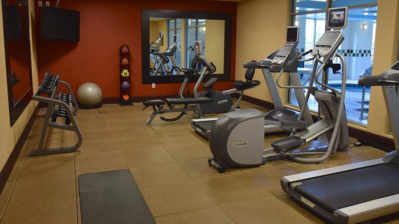 Are there any hotels with hot tub suites in Columbus with a gym?