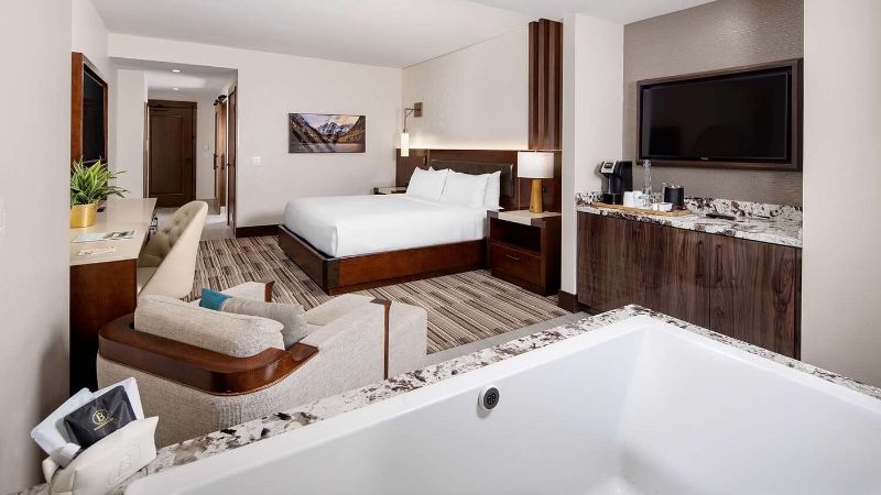 Many hotels with Jacuzzi suites in Denver offer an on-site spa with all kinds of services for you to enjoy. Some of these hotels include The Brown Palace Hotel and Spa, Autograph Collection, Ameristar Casino Resort Spa Black Hawk, and Hilton Garden Inn Denver Airport.