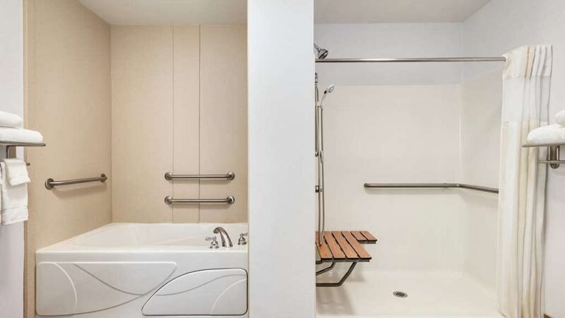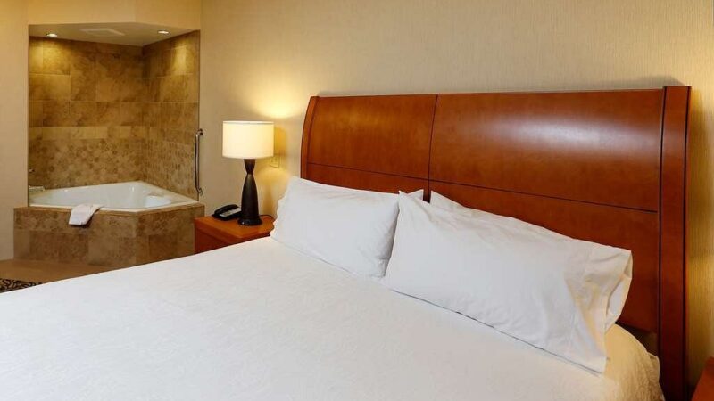 The best affordable hotel with in-room Jacuzzi in Iowa is Stoney Creek Hotel Des Moines – Johnston. We have a full list of best budget-friendly hotels with hot tub in room in Iowa.