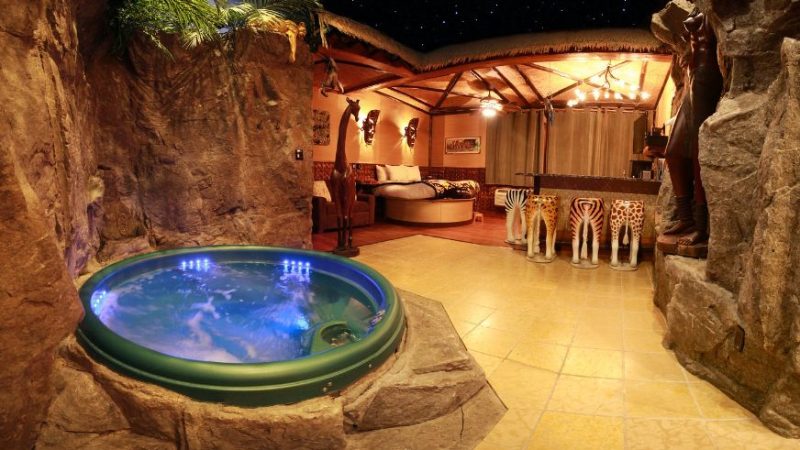 Are there any pet-friendly hotels with hot tub in room in New Hampshire?