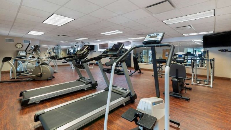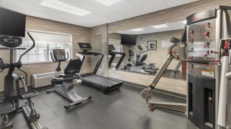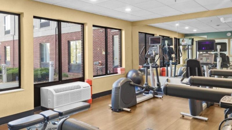 Do any of the hotels with in-room spa tubs in New Hampshire have an on-site gym?