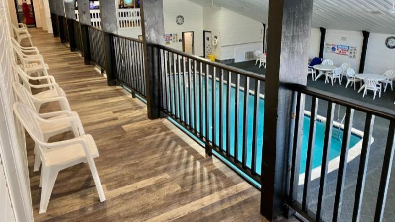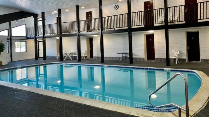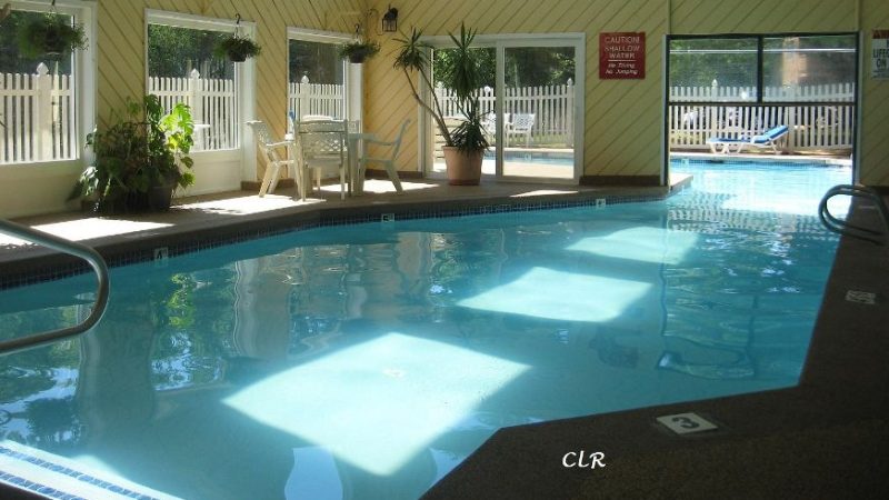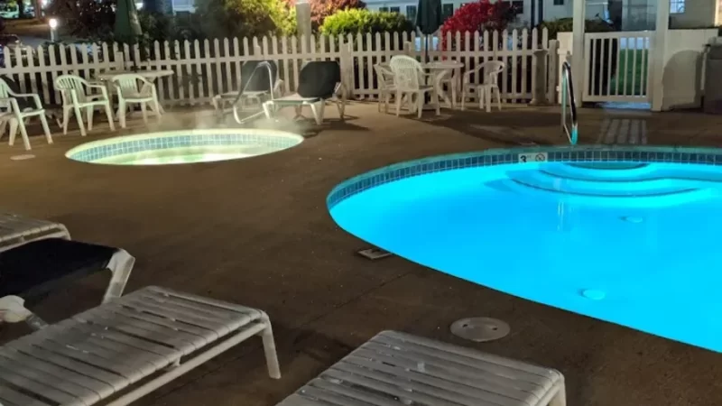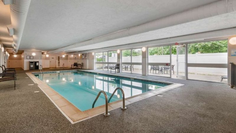 Are there any hotels with hot tub in room in New Hampshire with an on-site pool?