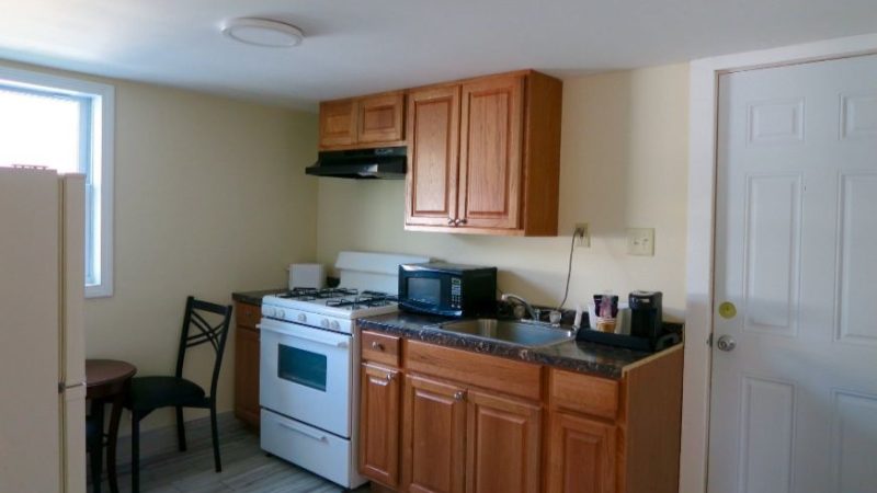 The only bathroom in the room has a door that doesn’t lock and has a sliver down the middle that you can just look through. [if you had a person on either side of the door you could still look at each other].