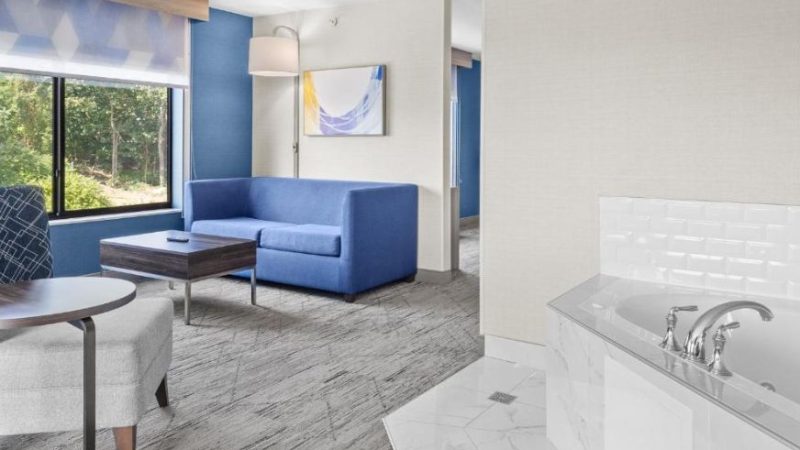 Currently, the top affordable hotel with Jacuzzi suites in New Hampshire is the Holiday Inn Express & Suites Manchester-Airport, an IHG Hotel. We have selected the best budget-friendly hotels with hot tub in room in New Hampshire which you can choose from!