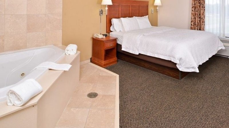 The best romantic hotel with hot tub suites in Indiana is Hampton Inn & Suites Richmond. We have a full list of most romantic hotels with hot tub in room in Indiana.