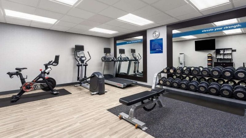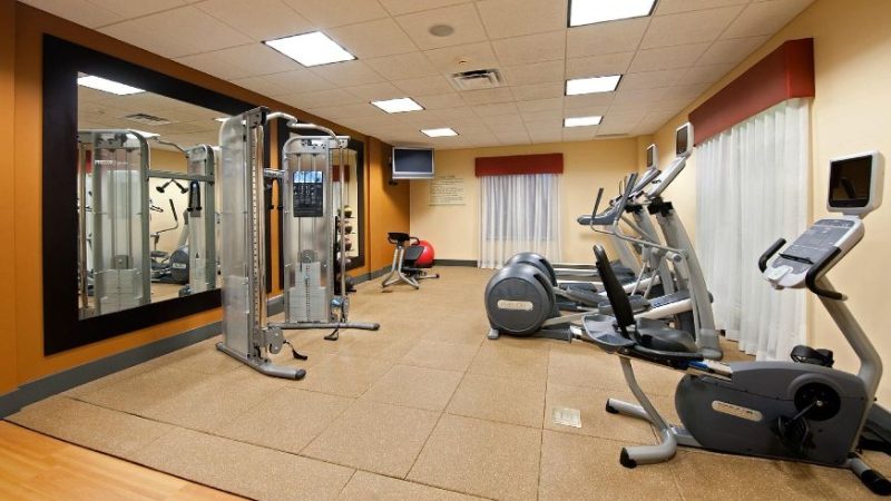 Many hotels with hot tub in room in Indiana have an on-site fitness center. Some of these hotels include Hilton Garden Inn Elkhart, Hampton Inn Indianapolis Downtown Across from Circle Centre, and The Westin Indianapolis.
