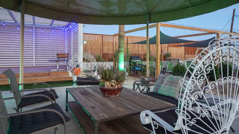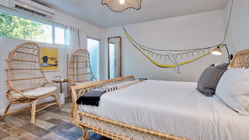 The whole place is literally a vibe. Koi pond, tiled pool, jacuzzi, two fire pits, fountains, hammocks, daybeds, and on-site bartenders. What else do you need ? Food? They got that too! Actually, breakfast is INCLUDED.