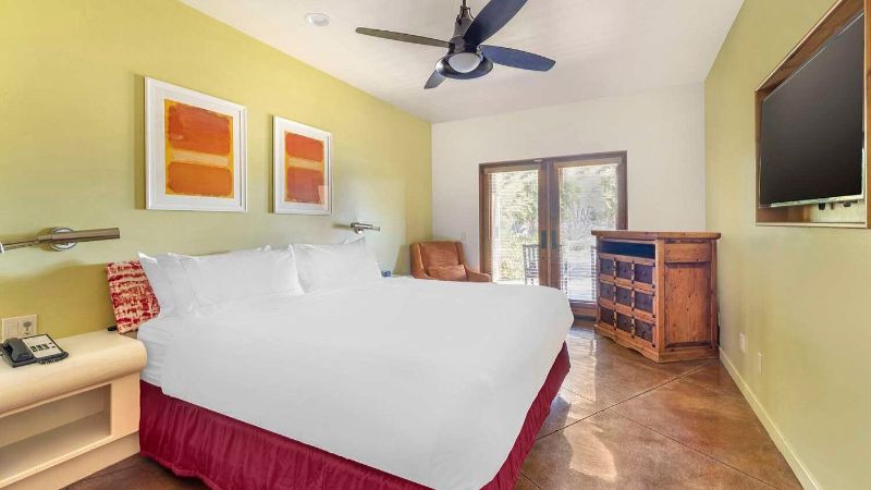 Cons: Breakfast included in the resort fee was very limited, just croissants, orange juice, coffee and tea. The poolside room I had was great during the day, but maintenance started very early (around 7:30) right outside my room, so I couldn't sleep in. TVs only have live TV and very limited on demand, so I wasn't able to watch movies at night like I had planned to.