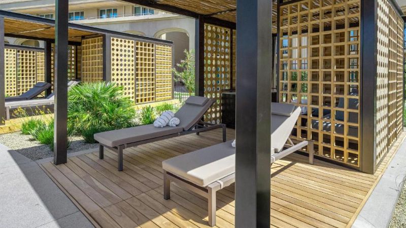 Michelin-approved hotel with private Jacuzzis, spa, rooftop bar, restaurant, and bike rentals in central Palm Springs.
