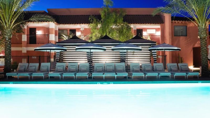 For couples: Margaritaville Resort Palm Springs is situated in the center of Palm Springs, with spa tubs, a restaurant, a bar, an outdoor pool, and a spa, great for an intimate stay.
