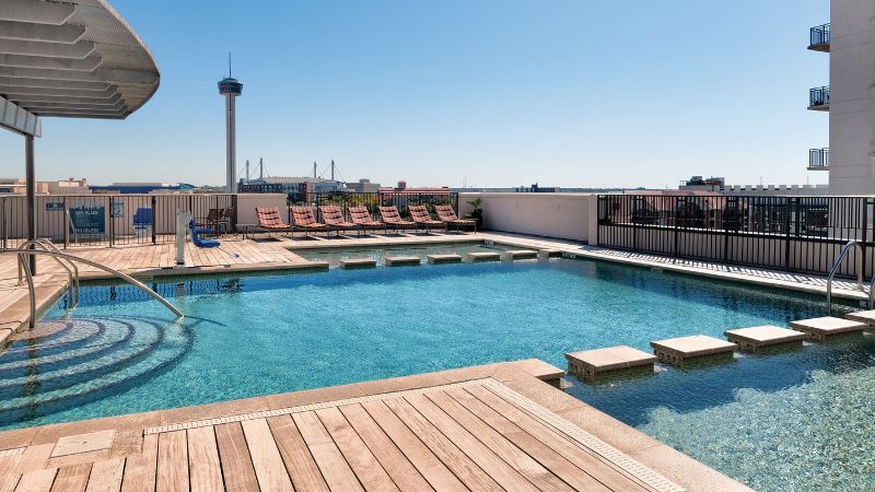 Location: right on the river walk in a classic great looking historical building. The rooftop has a pool and one of the better views of downtown.