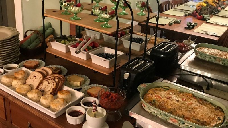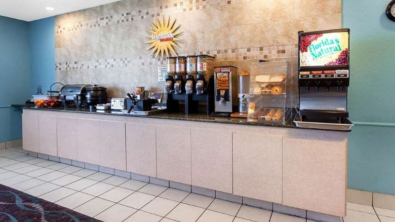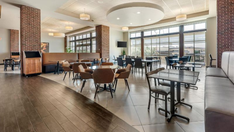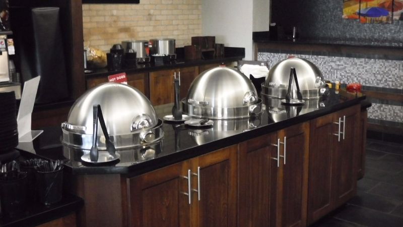 Free breakfast and free dinner. Breakfast is from 6 to 9 on weekdays. Lots of choices but none really stood out as delicious. The same goes for the dinner. Maybe it was that day but the food was just mediocre. For the breakfast I would add more pastries and not just bread. For the dinner there should be a baked potato bar.