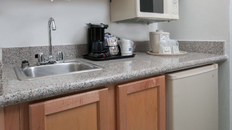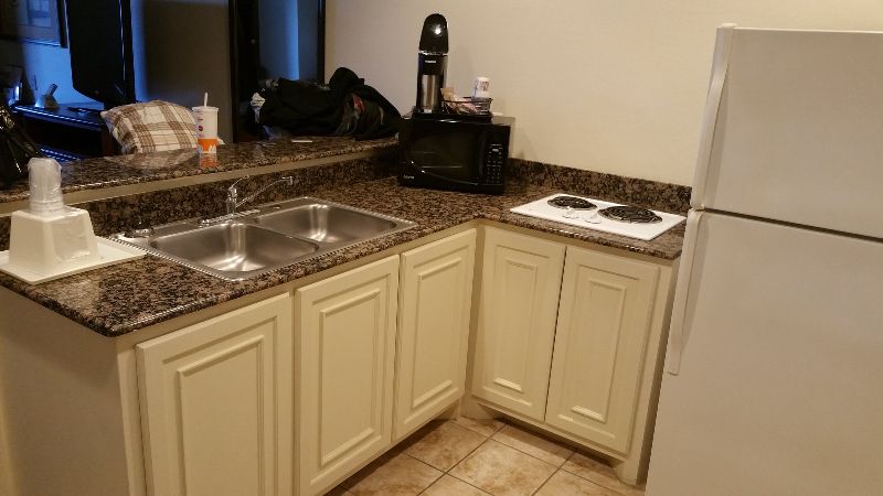 2. My room was bug-free and clean (floors could use a deep clean but they weren't too bad). The bed is comfy and the in-room mini-kitchen was super convenient.