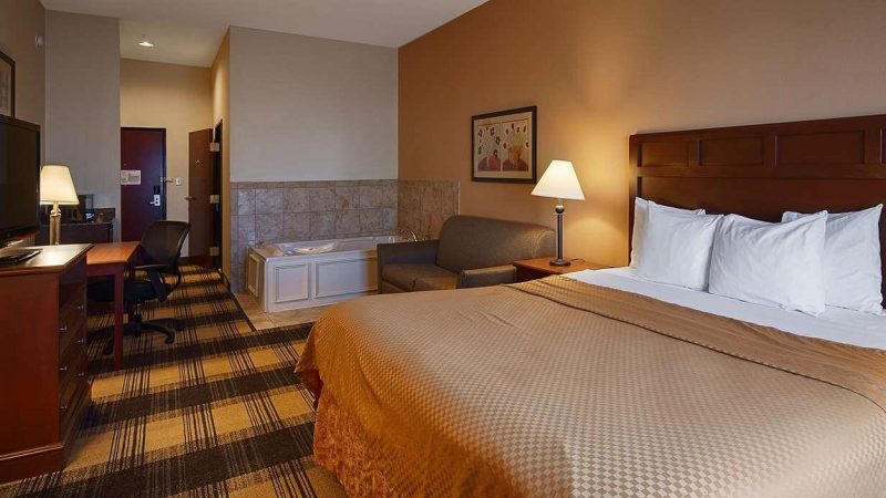 The best budget-friendly hotel with Jacuzzi suites in San Antonio is Best Western Plus Hill Country Suites. We have a full list of affordable hotels with Jacuzzi in room in San Antonio for you to choose from.