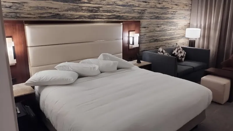 Amenities: complimentary breakfast and dinner with drinks will save you a lot of money if you choose to eat at the hotel. I found the food to be good quality and always stocked. The hotel bar has good food as well for a fair price. The valet parking is is pretty good as you can text or use an app to call your car before you leave the room