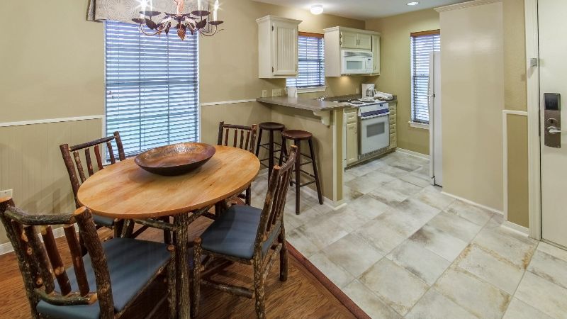 The main registration building is beautiful; the decor certainly befitting of the Texas area. There is a restaurant and bar on the property should you not want to leave the property. A large indoor/outdoor pool area is located in the center of the resort with numerous hot tubs dotted nearby. A very nice touch are both a steam room and sauna situated in the rec/pool area (of which I partook on a daily basis). Water slides for kids (and a few of us adults), a nice lazy river, and a children's activity center are all close by. There is also a primitive nature trail surrounding the resort for a nice little change of pace. Numerous deer were sighted during our stay.