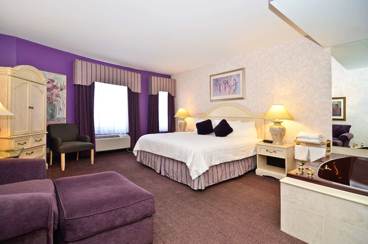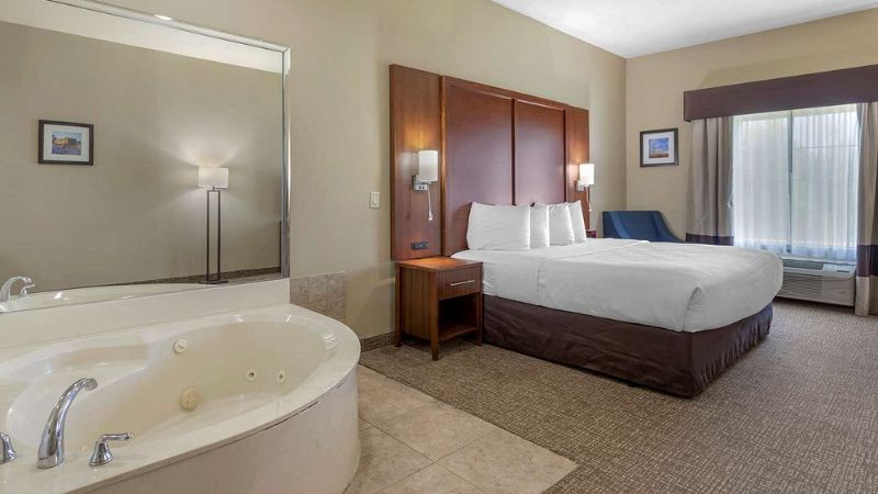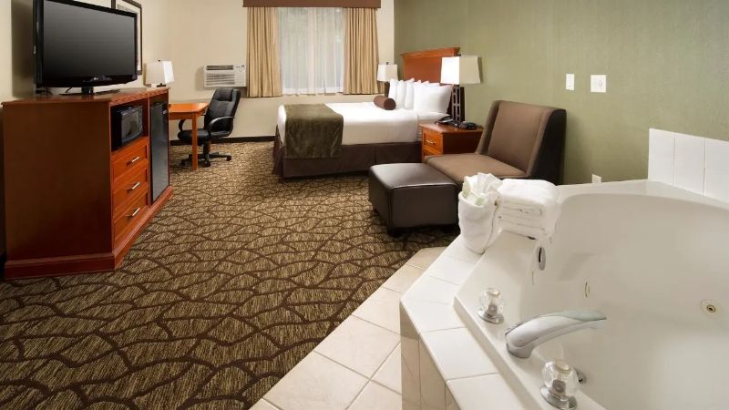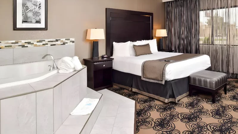 Best Western hotels with Jacuzzi suites combine affordability, comfort, and convenience. Each hotel offers a relaxing hot tub in room, perfect for unwinding after a long day. Many locations provide free Wi-Fi, complimentary breakfast, and easy access to attractions. Whether you’re planning a romantic retreat or a stress-free escape, these hotels offer a balance of value and luxury. Best Western’s rewards program also makes it easy to earn points for future stays. With trusted service and great locations, it’s an excellent choice for travelers looking for relaxation and quality accommodations.