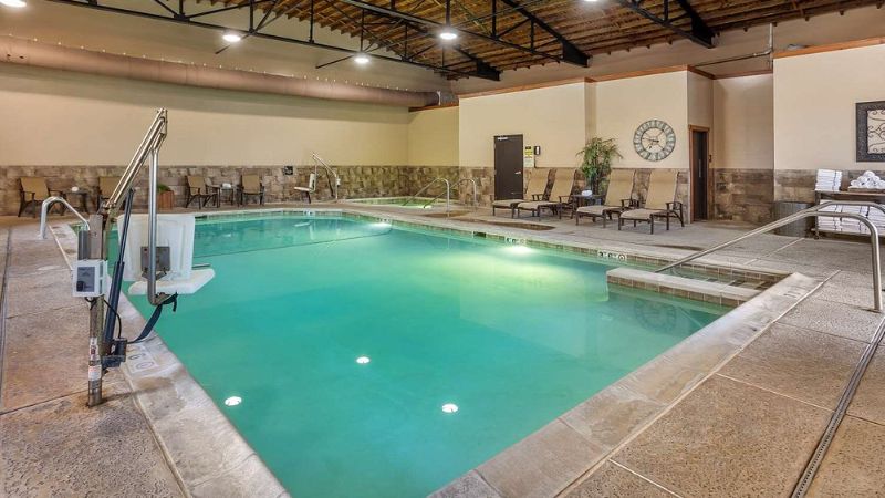 Best Western hotel with great riverside view, in-room hot tubs, heated pool, and access to outdoor activities.