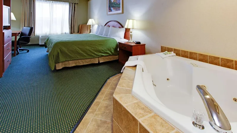 There are many hotels with Jacuzzi suites in Boston with a pool on-site. Some of these hotels are Best Western Plus Cold Spring, Baymont by Wyndham Kingston Plymouth Bay, and Country Inn & Suites by Radisson.