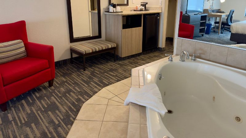 Besides the Jacuzzi or hot tub, guests can typically enjoy amenities such as plush bedding, breathtaking views, complimentary Wi-Fi, flat-screen TVs, luxury bath products, and sometimes even a fireplace in the room. Hotels also often have on-site restaurants, fitness centers, and spas for a fully pampering experience.