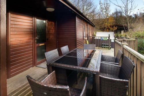 Robin View Lodge is a modern two-bedroom lodge. Amenities include a hot tub, fully equipped kitchen, WiFi, and parking. Decking with outdoor furniture. Close to village shops and pubs.