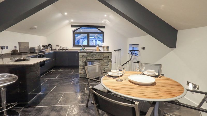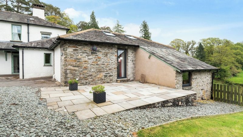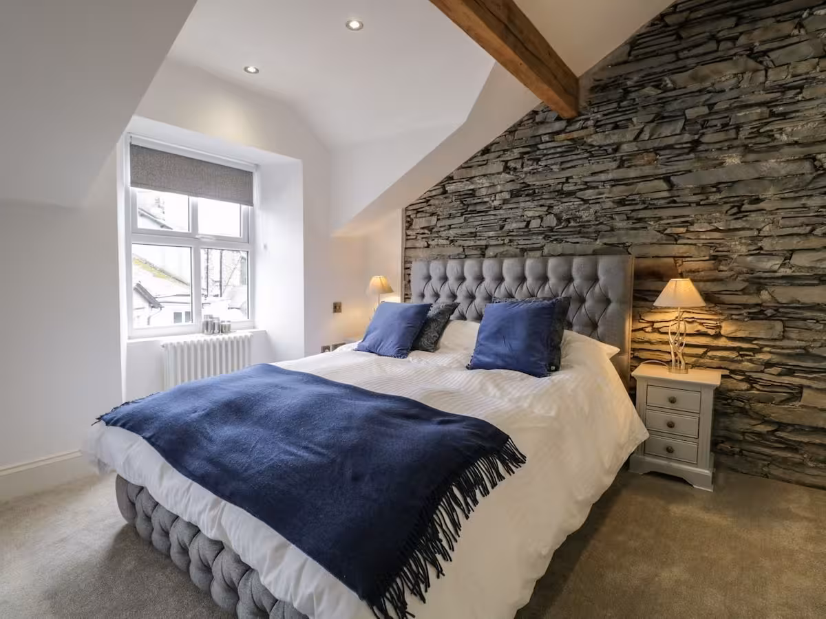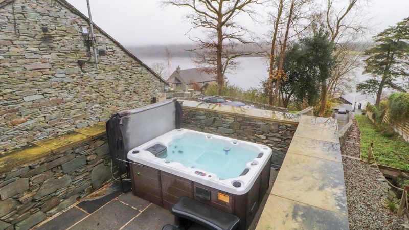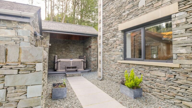 Riggbank is a four-storey cottage in Windermere, with three bedrooms, en-suite bathrooms, a modern kitchen, living/dining room, and a snug. Enjoy a patio with a hot tub. Ideal for a romantic Lake District getaway.