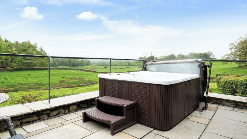 Acorn Bank Lodge offers a modern retreat for up to four guests plus an infant. Enjoy a hot tub with views of the Lake District, while one dog is welcome to join the stay.