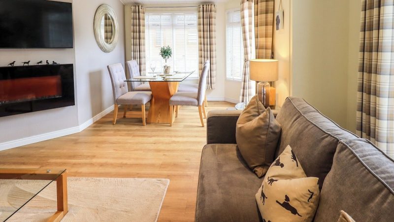 Laughing Duck Lodge offers a delightful retreat with three bedrooms and two bathrooms. This romantic lodge offers an open-plan living area, and a secluded hot tub. Perfect for couples, and their pets.
