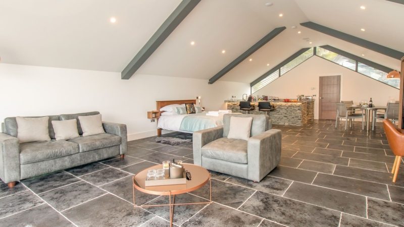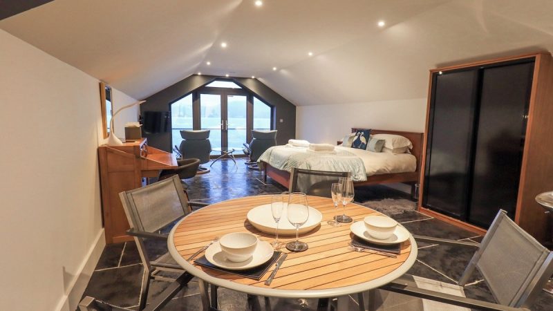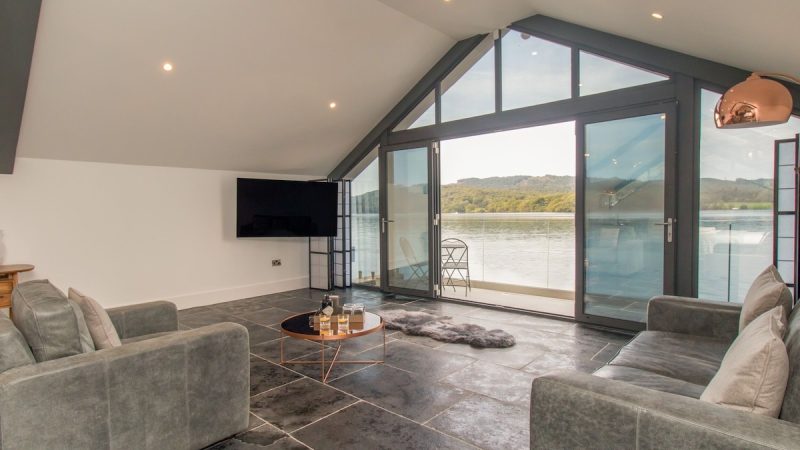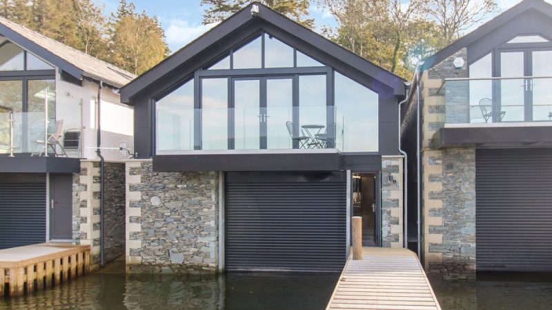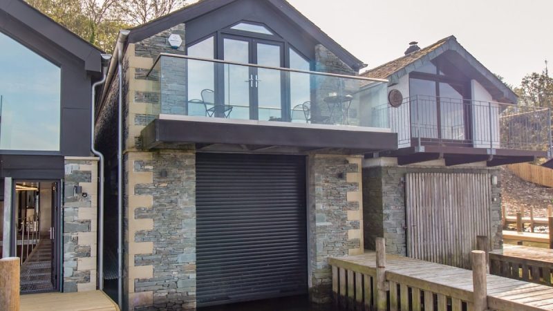 Boathouse on the Water is a unique studio-style retreat, perfect for couples. A king-size bed, a well-equipped kitchen, a private balcony, and a hot tub. Ideal for a romantic Lake District getaway.
