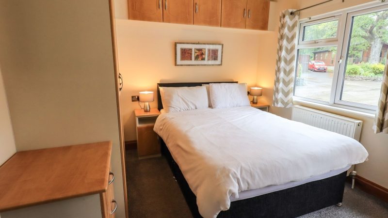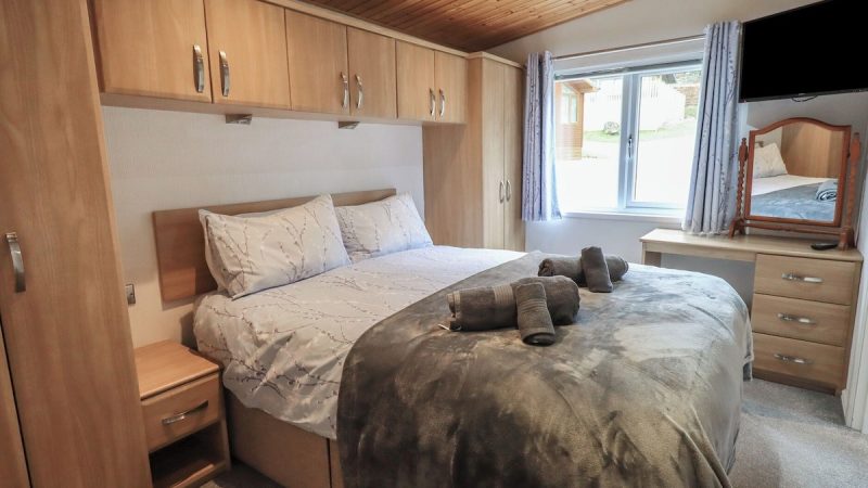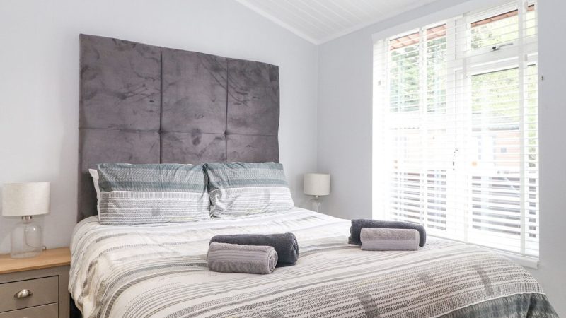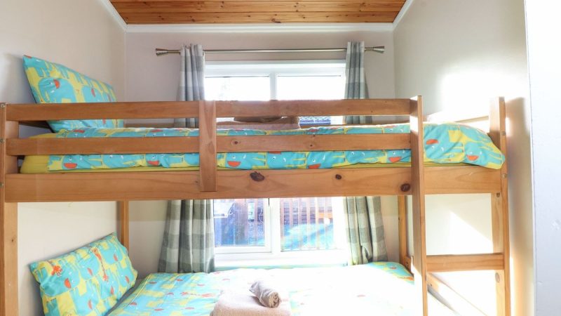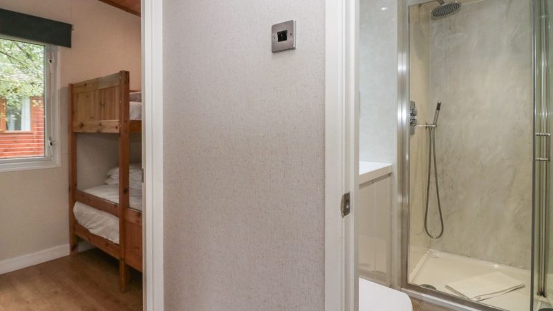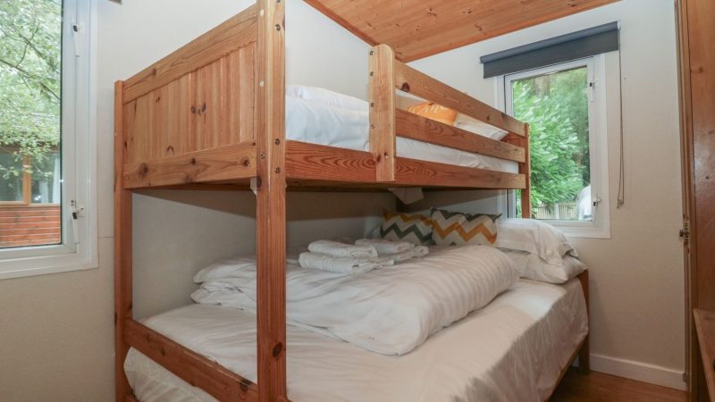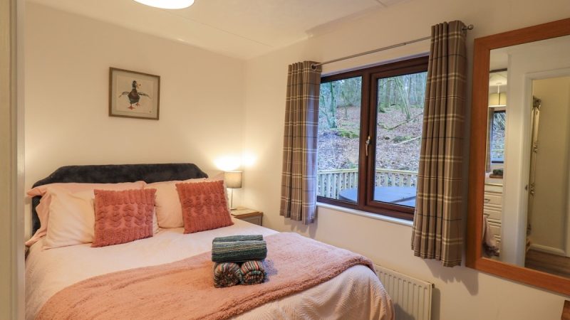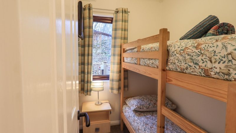 Woodland Retreat is a peaceful stay with two double bedrooms, an adult bunk room, and a private deck with a hot tub. It’s perfect for families and welcomes one well-behaved dog.