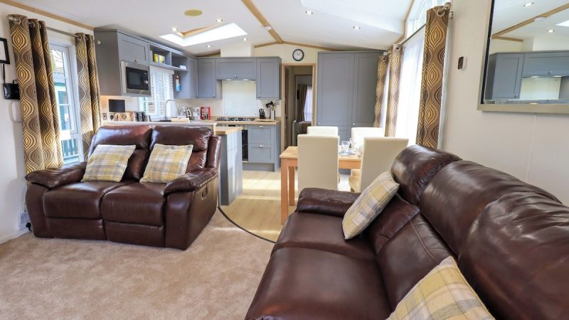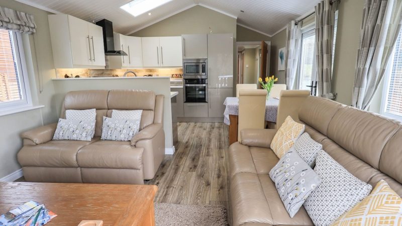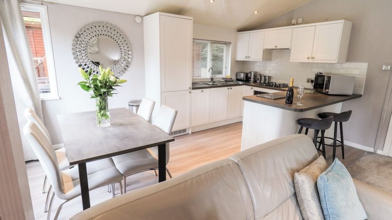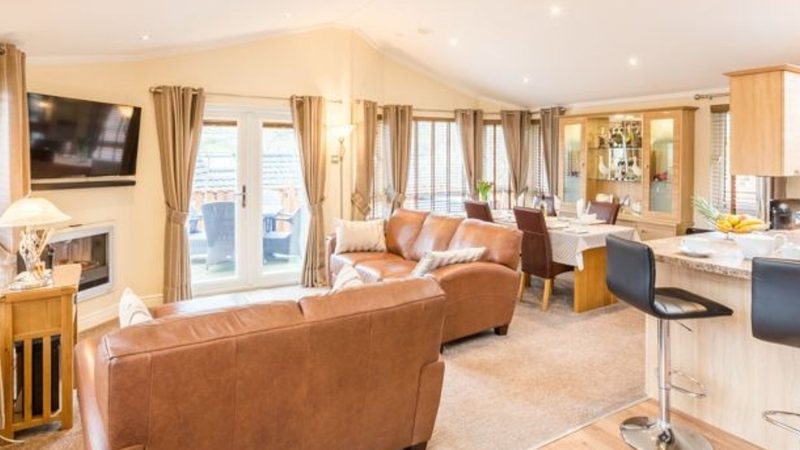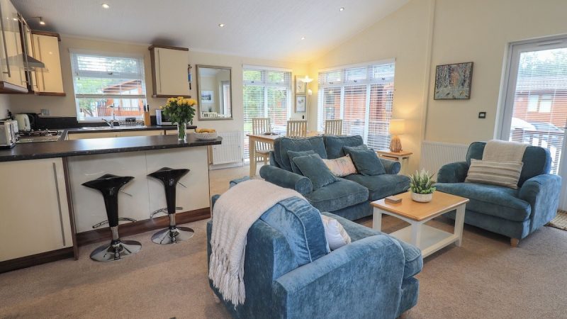 Dovedale Lodge at White Cross Bay offers modern open-plan living, two bedrooms, a family bathroom, and a spacious deck with a hot tub. Perfect for couples or friends seeking a relaxing getaway.