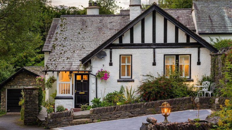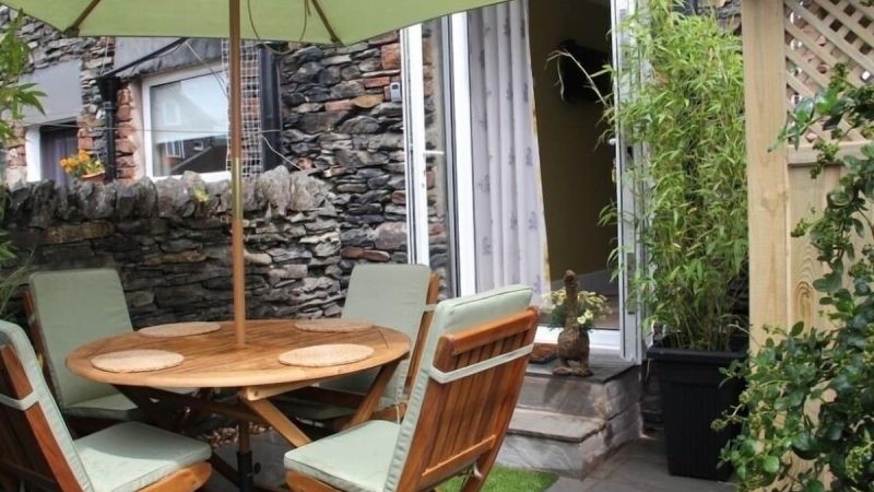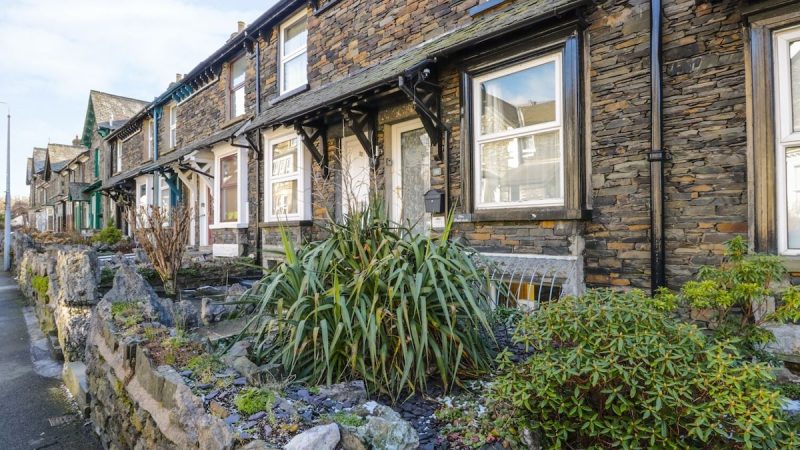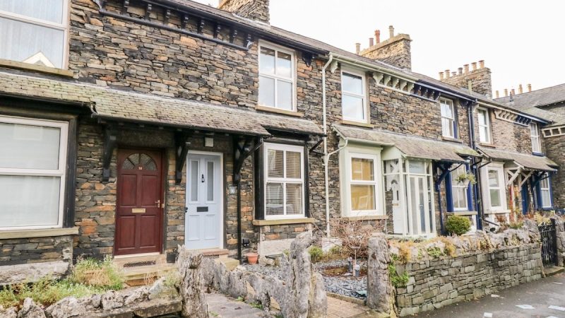 Mrs Puddleducks is a charming cottage in Windermere, it has two double bedrooms, a ground-floor bunk room, and a garden with a private hot tub. Two small dogs are welcome.