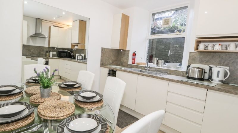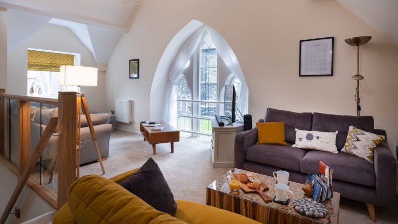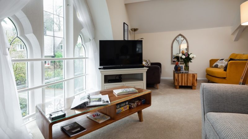The Belfry offers a charming stay with a modern living space, well-equipped kitchen, and private outdoor area with a hot tub. It’s perfect for a family getaway, with private parking for two cars.