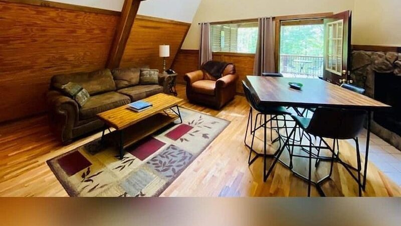 Peaceful cabin with hot tub, air conditioning and fireplace in South Bloomingville, surrounded by Hocking Hills’ beauty.