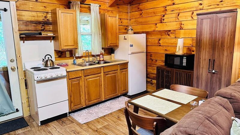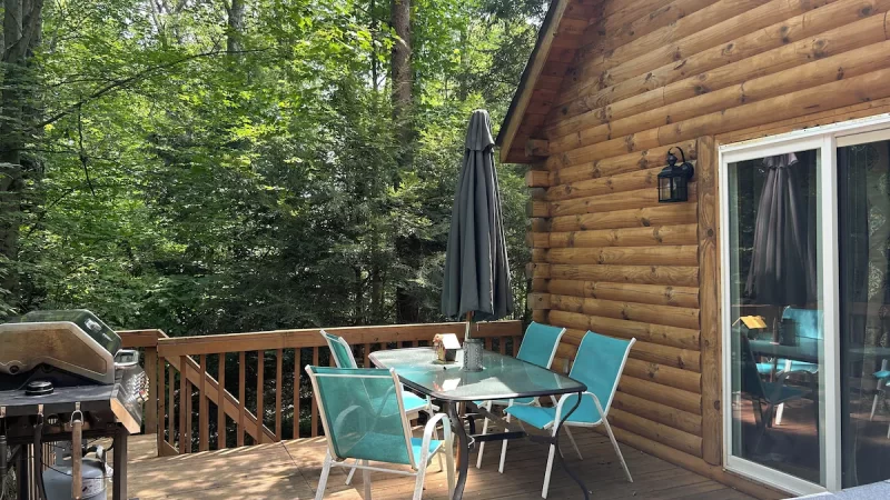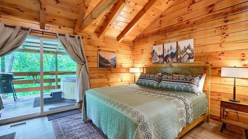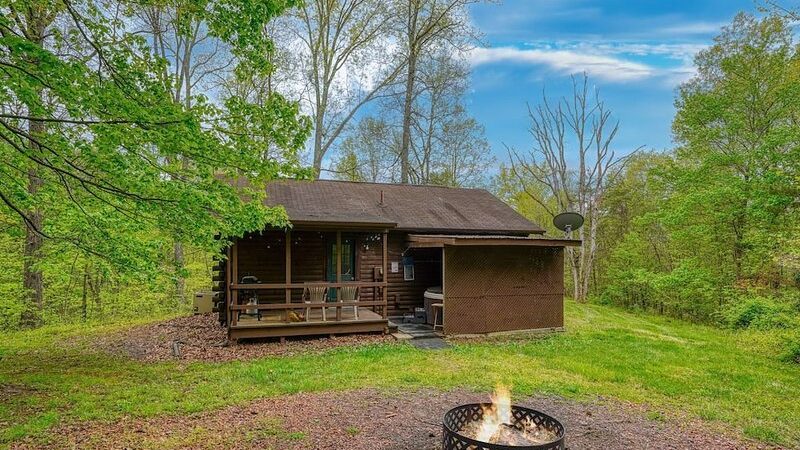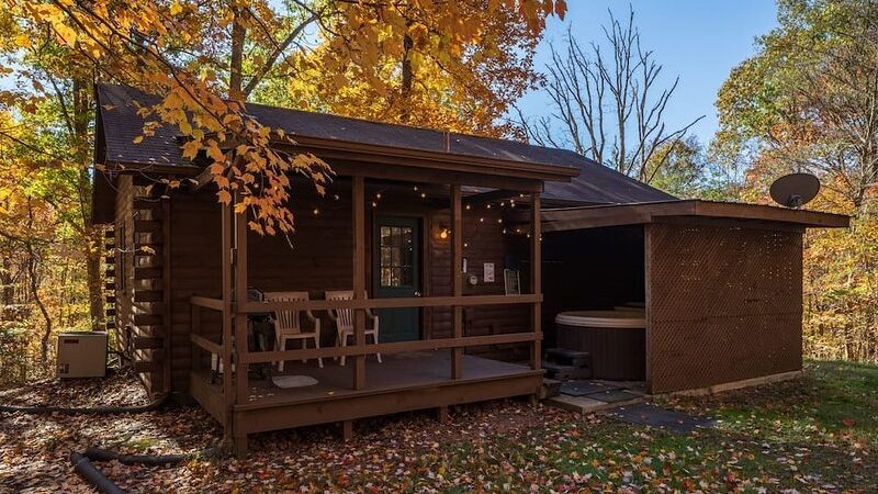 Peaceful cabin with hot tub, air conditioning and fireplace in South Bloomingville, surrounded by Hocking Hills’ beauty.