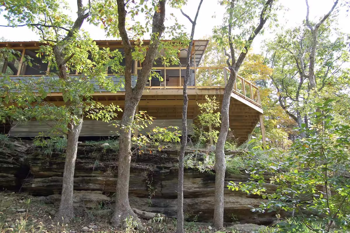 This lakefront cabin offers outdoor adventures, a romantic hot tub, and natural beauty in Eureka Springs.