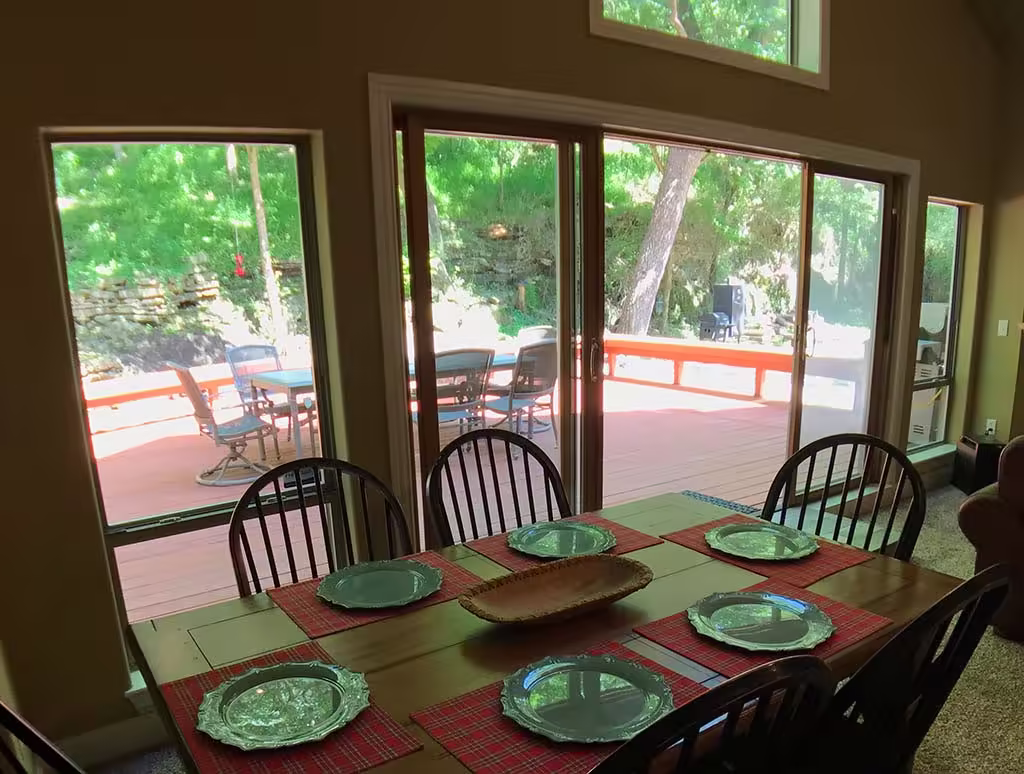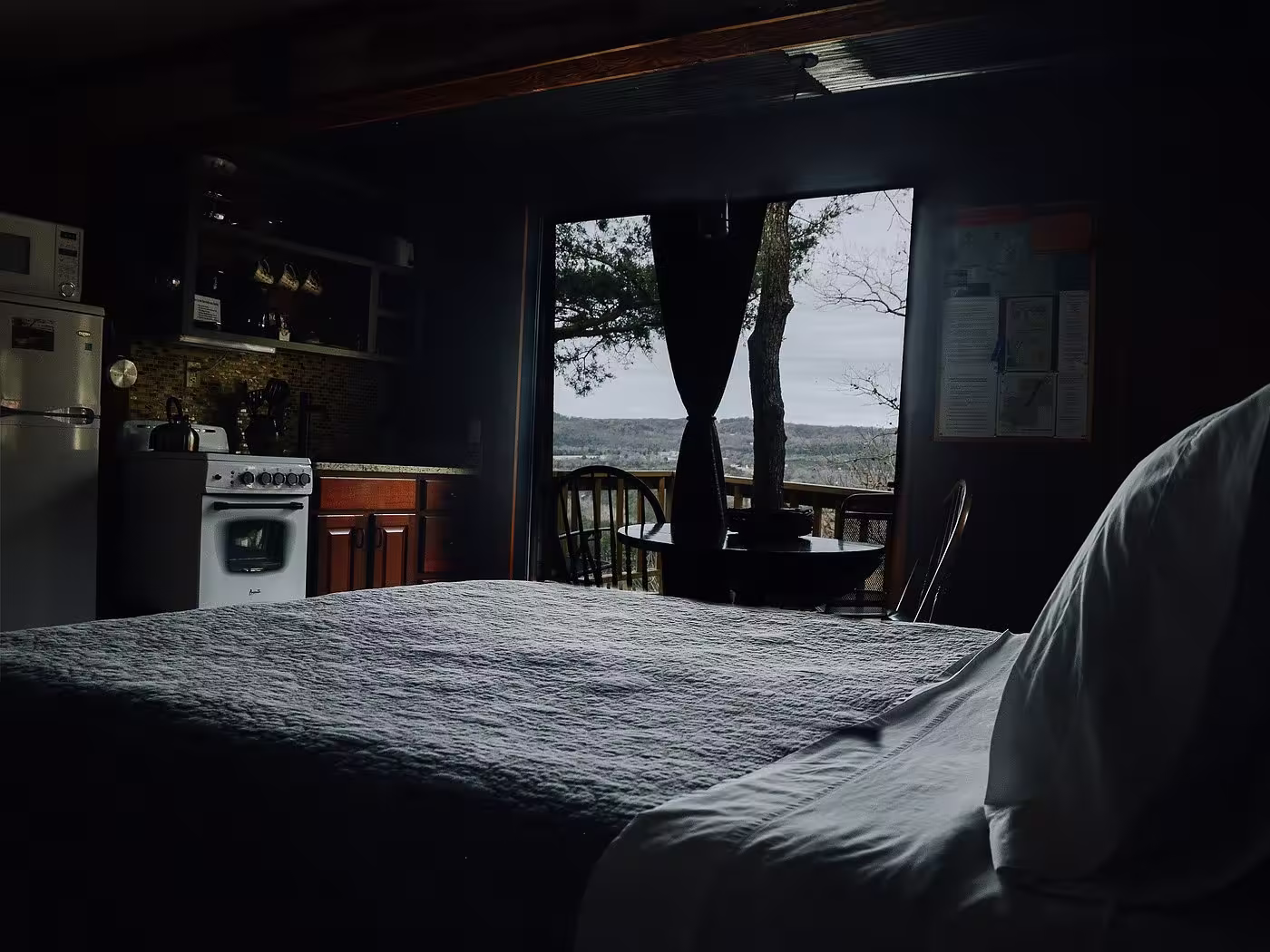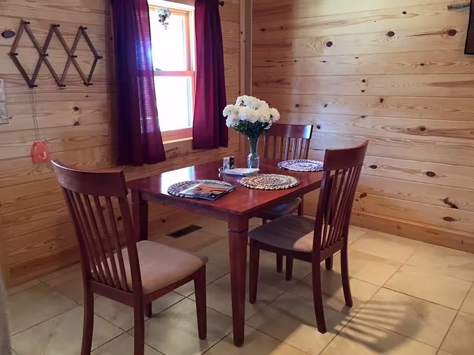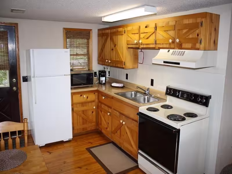When we checked in and got our keys we immediately couldn't get the fireplace to work and had to try to fix the blinds. They were broken apart in so many places that you could openly see bed from the window in the door. They were "fixed" with a clothes pin for privacy. We called the office and was told "it would take a while" but she would send someone to light the fireplace. We walked down to the dock and decided against fishing that night because of the holes and rotten wood. There were no signs posted saying otherwise but im sure its not safe and could be an insurance hazard. We then decided to make our grocery list and go to the local store for dinner. When we arrived back to the cabin we began to prepare to cook. The stove in the kitchen had no power. 3 hours had passed since our first call so we called again. This time we were told that "he is busy cooking dinner and there are 2 people ahead of you and then he will be over." We decided to make a fire on the ground out of rocks to cook our pan items while my husband cooked on the grill provided. (Big enough for 2 steaks)