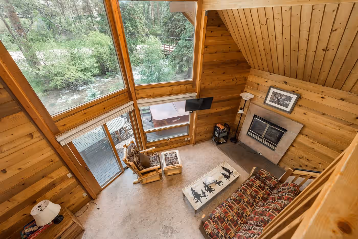 A hidden mountain cabin with a hot tub, charming interiors, and nature views.
